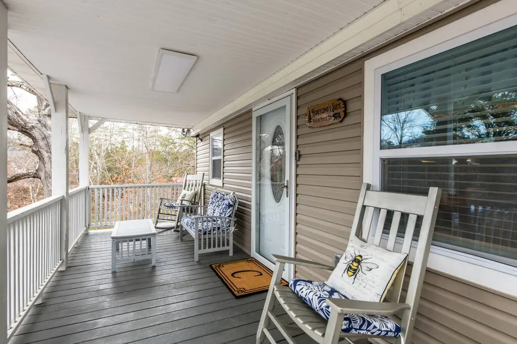 With a fully equipped kitchen, comfortable living spaces, and charming decor, you’ll feel right at home during your stay. Plus, enjoy the added bonus of a private deck with stunning views of the Parkway. Your perfect getaway awaits!